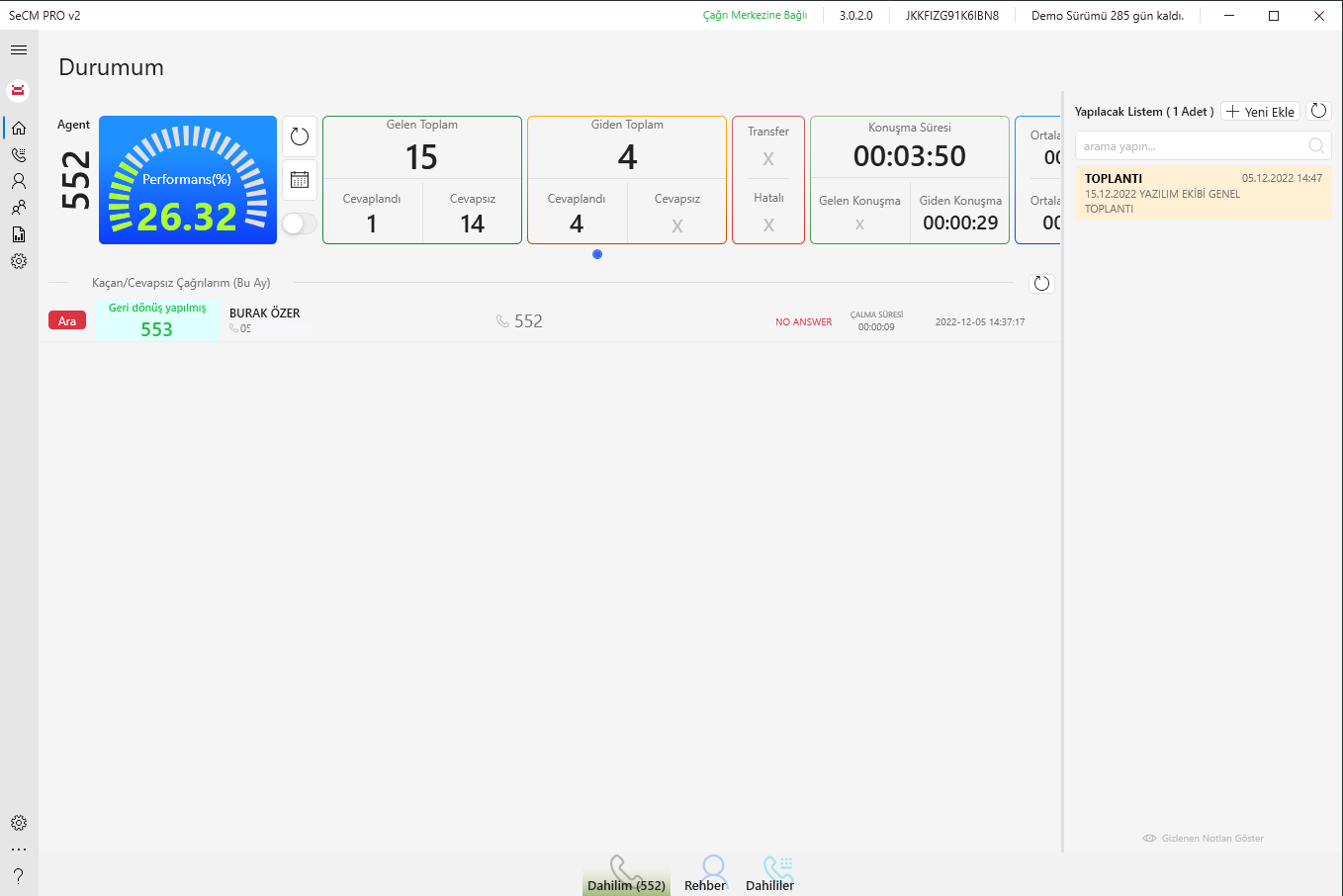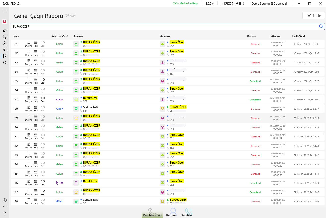 SeCM PRO V2 programı Çağrı Merkezi ile entegre çalışarak, arayanı ismi ile hitap etme, geçmiş notlarını ve geçmiş çağrı kayıtlarını görebilme gibi birçok özelliği ile sizlerin işinize odaklanmanıza olanak verir.